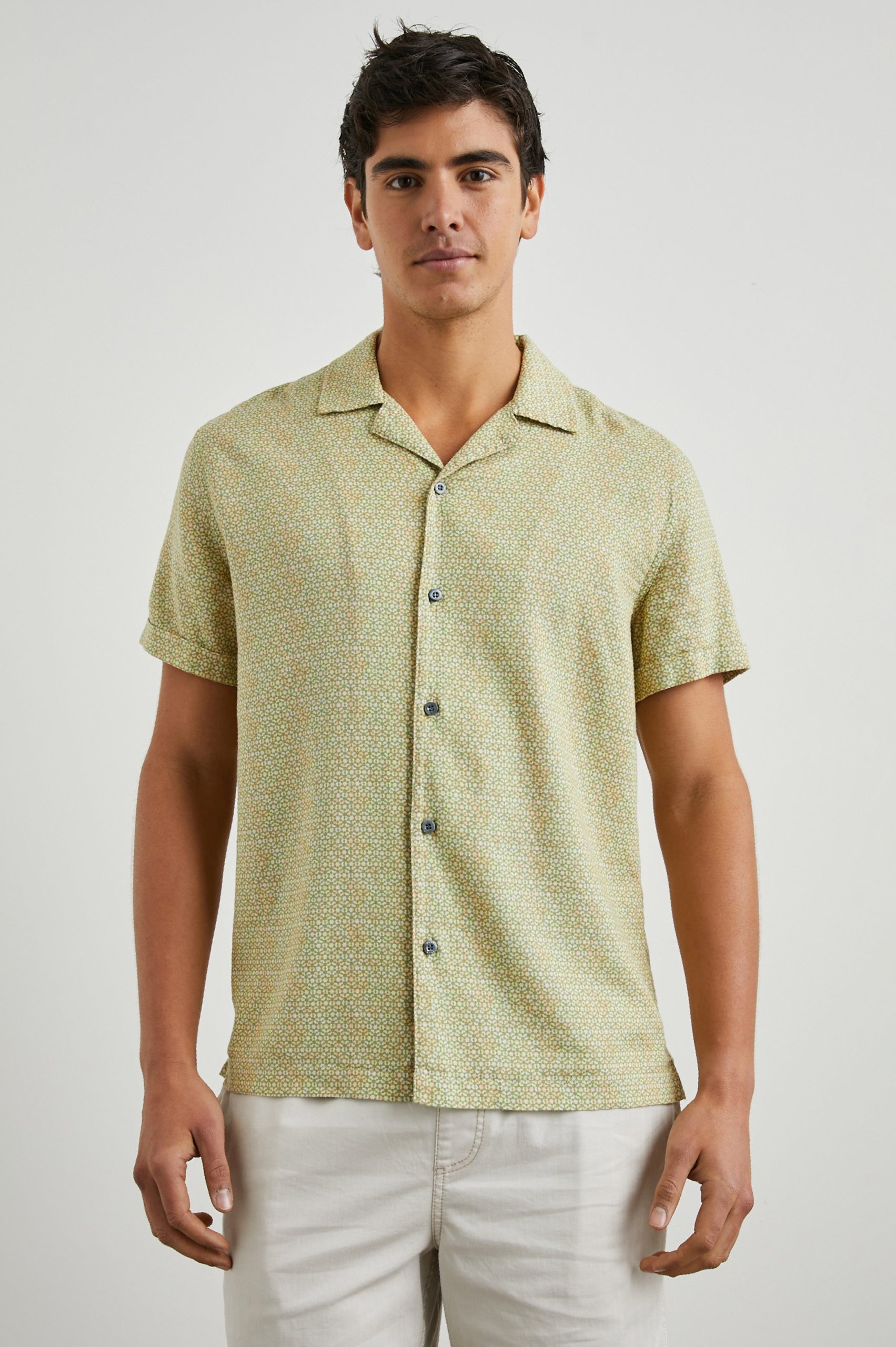 The Amalfi is a breezy button-down made from lightweight linen. This euro-inspired shirt features a structured collar and flattering geometric pattern.
