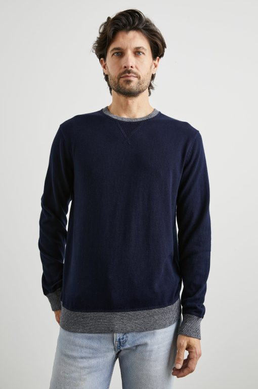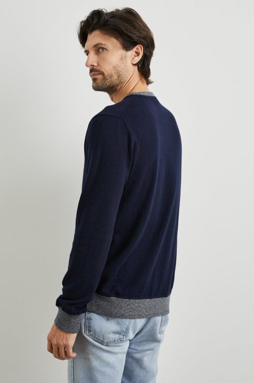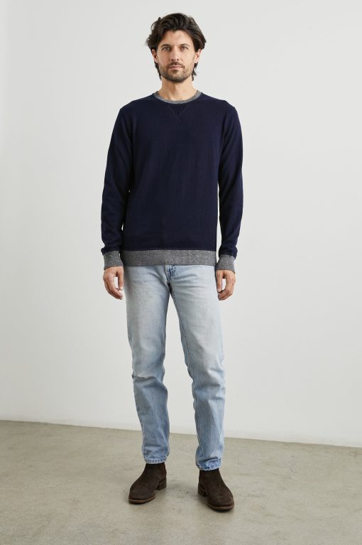 Embracing the relaxed aesthetic of coastal California, this ultra-soft cotton-cashmere fine-gauge sweater goes from day to night with ease. Complete with contrast rib detailing for a modern twist on classic design, the Burns transitions from weekday meetings to weekend adventures effortlessly.