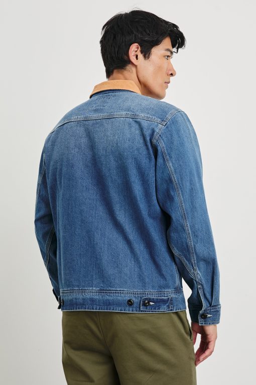 This vintage-inspired jacket is both a staple and a statement piece. Crafted from rugged cotton hemp canvas with a contrast corduroy collar, this style fuses form and function seamlessly. With a classic trucker jacket fit this statement piece is perfect for both outdoor excursions or urban explorations.