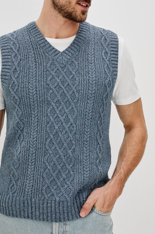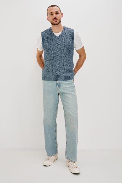 Our take on a timeless style, the Lee sweater vest features a classic fit with traditional cable-knit design details. Spun from a cotton blend inspired by Japanese rag yarn for durable comfort—layer it over a tee or button-down.