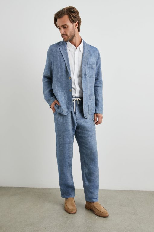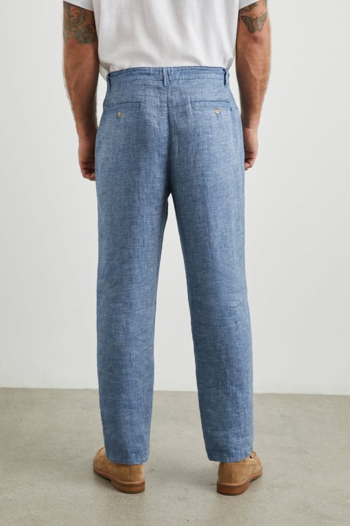 The Mercer Pant is a go-to, tailored style made of lightweight, super soft linen twill fabric. Cut for a slim fit that tapers from the knee down, it features a button fly, pockets, and an exterior draw-cord for when the waistband needs tightening.