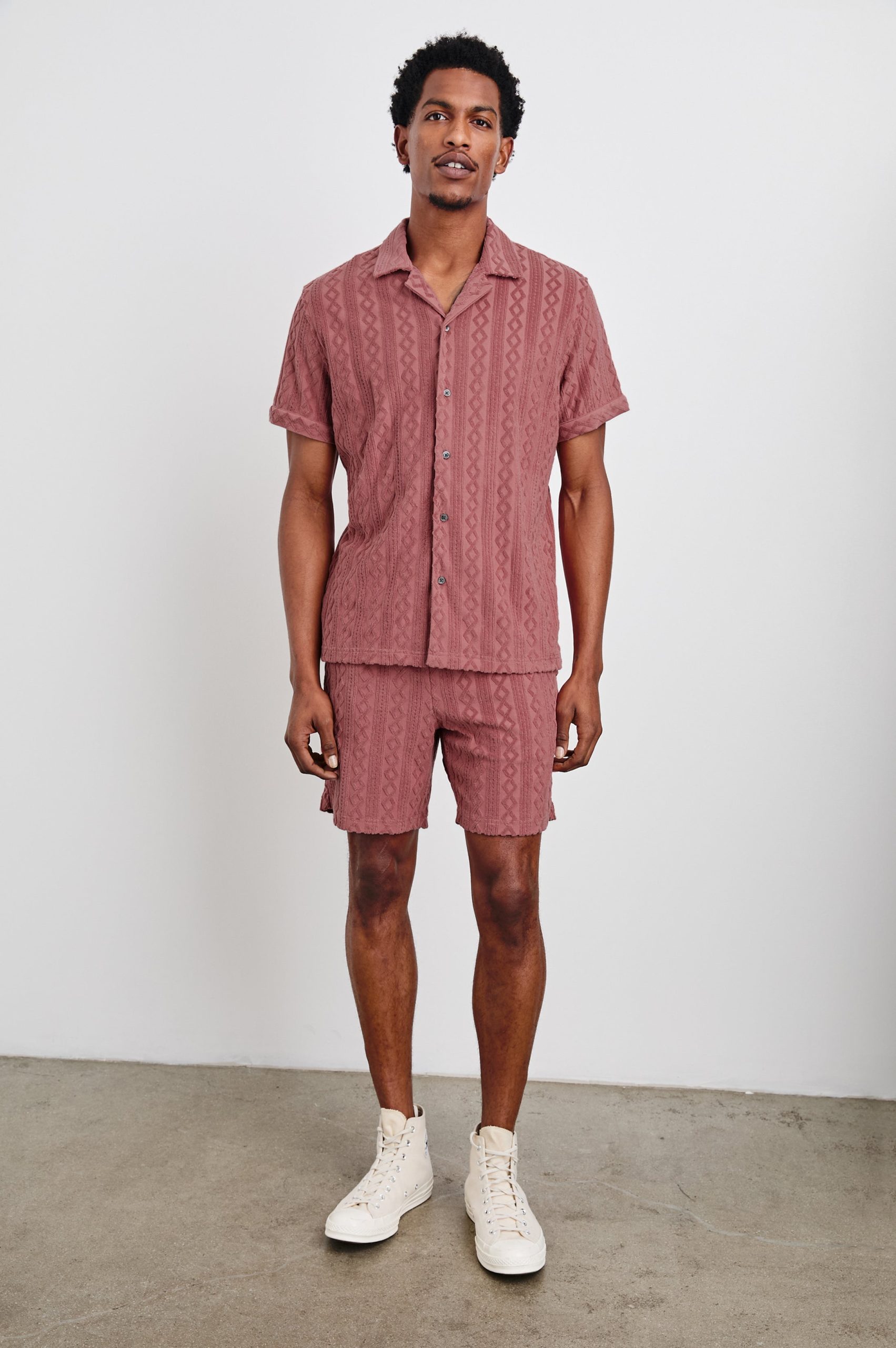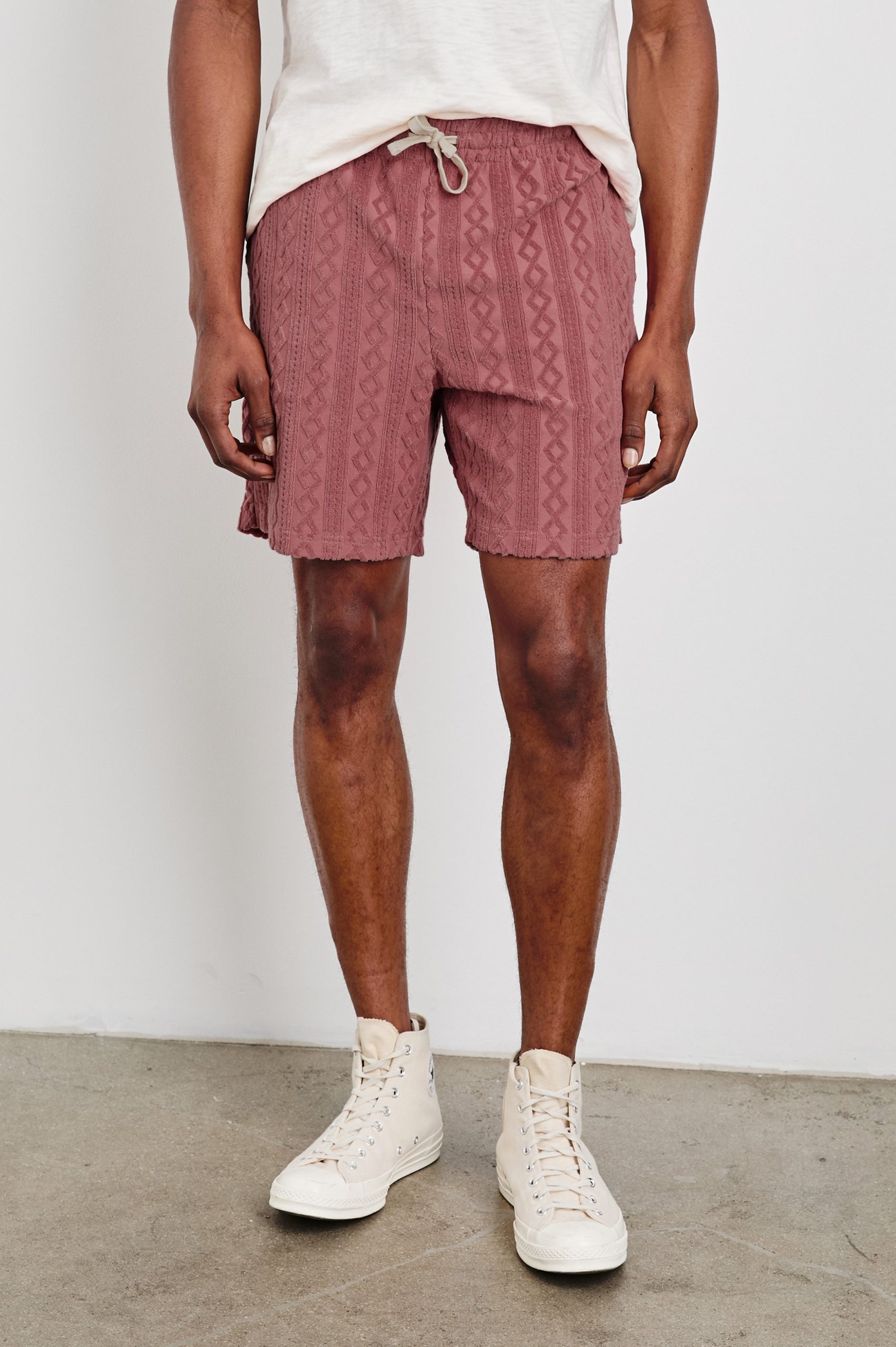 The classic pool short, with a twist. The Nova Short is crafted from towel terry fabric featuring a raised jacquard pattern, ideal for outdoor wear around the water. To complete the look, pair with the matching Maverick Shirt.
