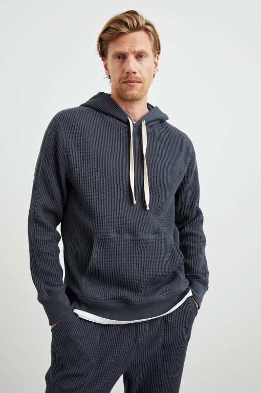 An effortless hoodie to throw on and go. The Preston features a ribbed cuff and hem, kangaroo pouch and lined jersey hood, crafted from a soft waffle cotton thermal. Finished with a contrasting drawstring, the Preston elevates loungewear staple to a timeless essential.