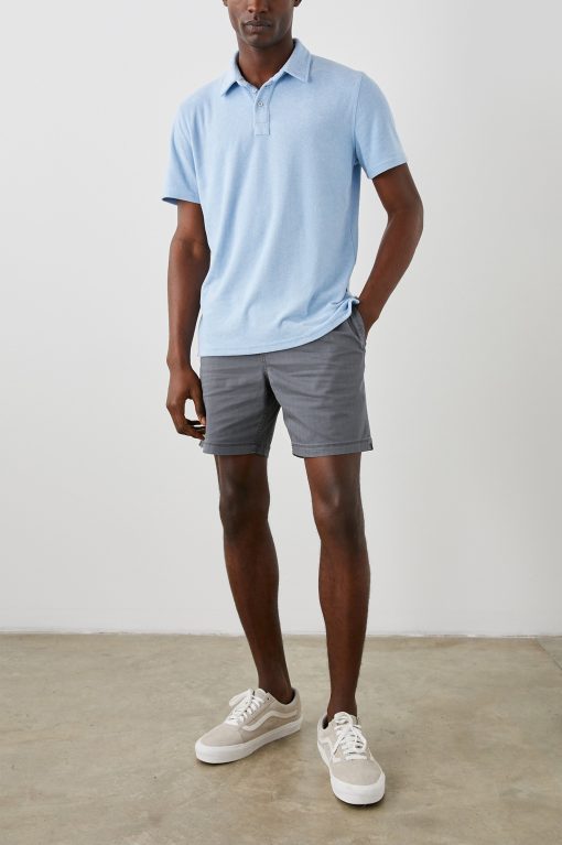 This Southern California inspired vintage style is perfect for lounging poolside and beyond. Made from super soft towel terry fabric, this short sleeve polo features a placket with metal buttons and a classic fit.