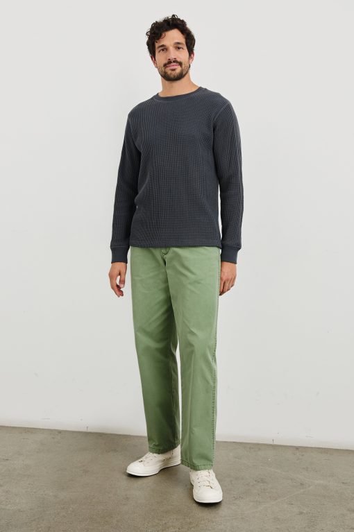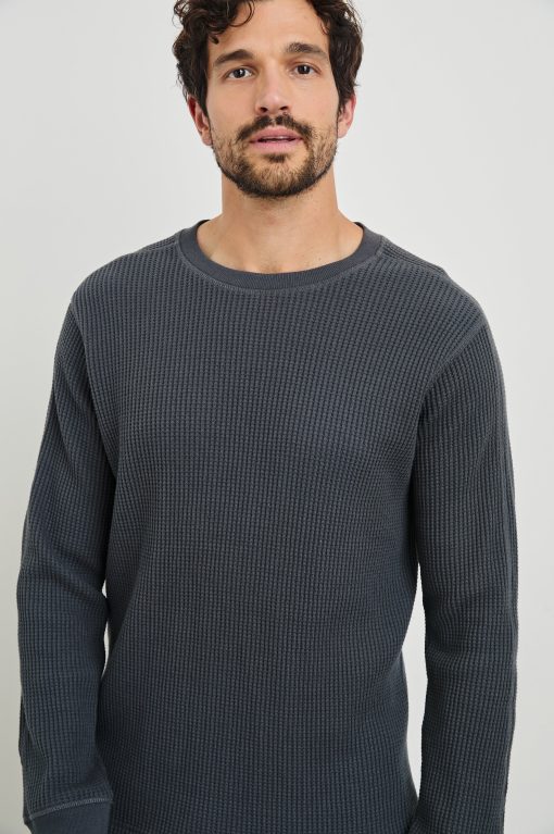 No cozy season is complete without Wade, a heavy-duty waffle knit thermal. Crafted from a soft cotton-poly blend with a traditional crewneck and rib cuffs, the Wade is a layering essential.
