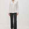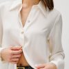 The Abbey is a silk charmeuse button-down with raw edge detailing at the collar and cuffs. It offers an easy fit with a touch of feminine flair.