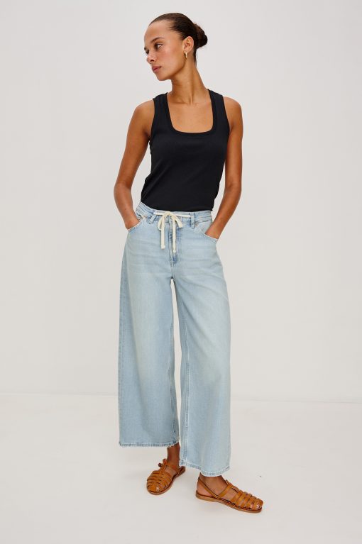 The wide-leg, mid-rise Angeleno—now in a cropped cut. This effortless denim takes cues from California culture in the 90s, complete with an adjustable shoelace-style drawstring at the waist.