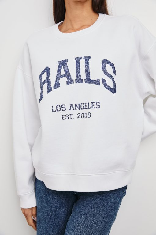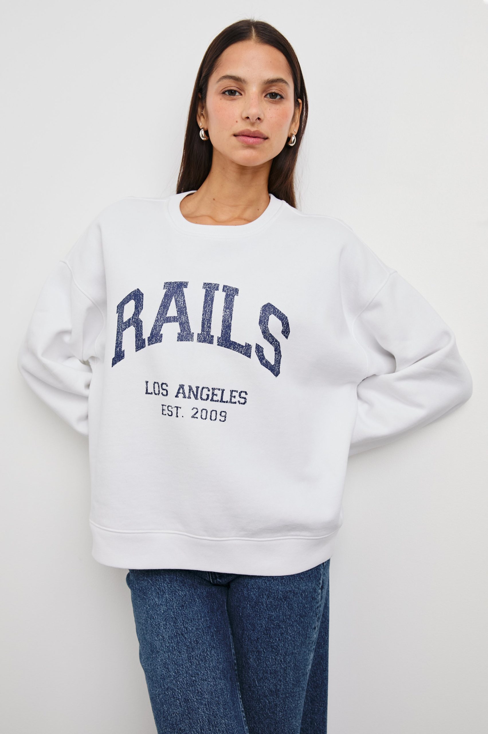 The Rails take on the classic athletic crewneck. The Varsity Sweater is a cotton-poly blend with an ultra-soft feel, a relaxed body, and a vintage-inspired Rails logo — an homage to our 15th Anniversary.
