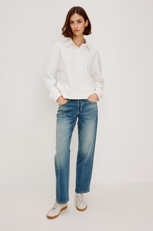 The Barlow is a polo sweatshirt featuring a button-front half placket and crafted from luxe French terry. A drop shoulder and binding at the hem and cuffs provide a comfortable, relaxed fit.