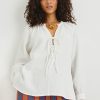 Crafted from luxe linen, the Brielle is an airy style with a mandarin collar, raglan sleeves and front ties. This is a longer top with a roomier silhouette to ensure comfort.