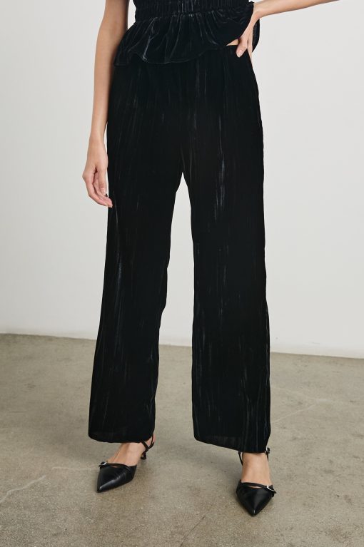 Comfort never looked so cool. The crinkle velvet Brissa have a high-rise, wide-leg fit with an elastic waistband that moves with you. Pair with the Rosie top or your favorite sweater, you'll want to live in it all season long.