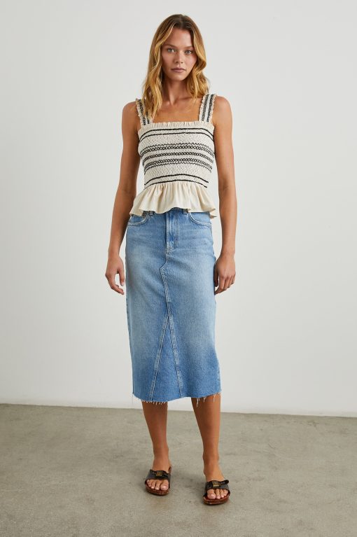 Your classic tank gets a makeover with the Cecily. Featuring an intricately smocked bodice and frilled hem in cotton poplin, the Cecily is bound to be the most versatile top in your rotation — wear to work and for all your weekend activities.