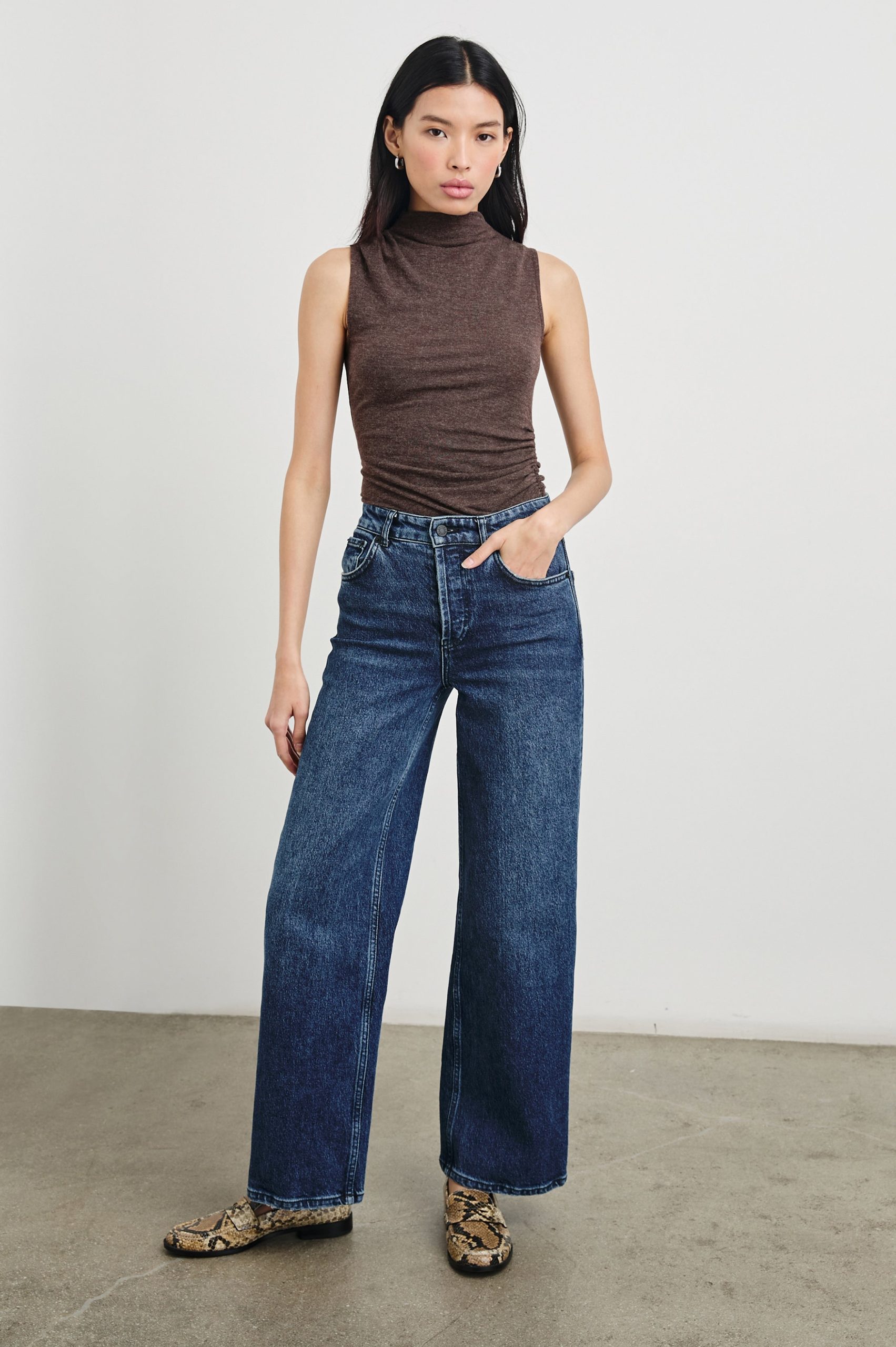 Meet your new, favorite season-less tank. Cut from a supple brushed tissue with a mock neck, slight stretch, and light ruching at the seams, the Christen fits and flatters any figure seamlessly. Dress up or down for any occasion, it is a timeless staple.