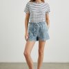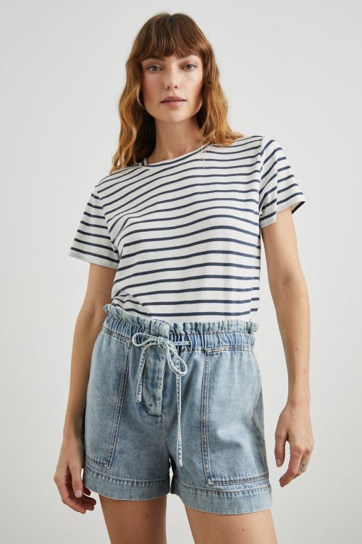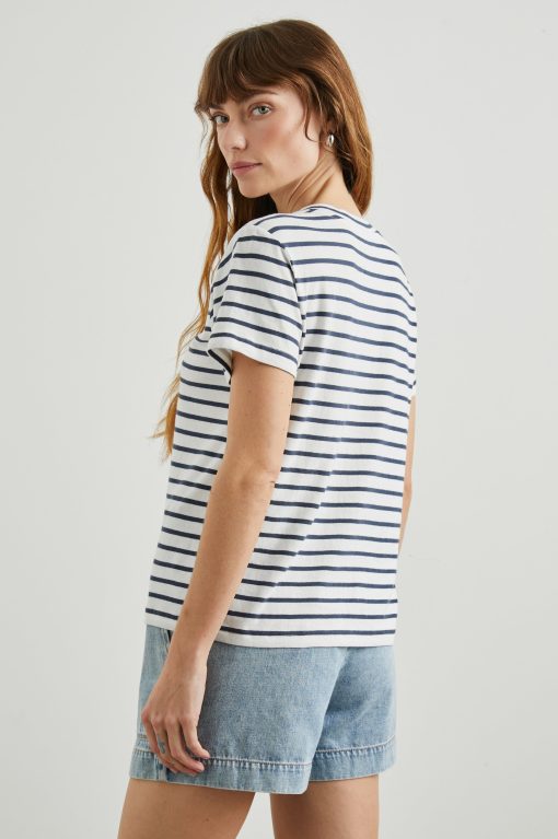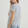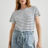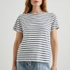 Your new go-to, this timeless white tee comes in a crewneck silhouette and features navy and ivory stripes. This super soft crewneck tee is made from brushed cotton, perfect for everyday comfort and breathability.