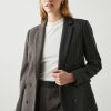 Tailored to perfection, this menswear inspired blazer will take your style to the next level. Made from a wool blend, this double-breasted mixed print blazer jacket features faux horn buttons, notched lapels and functional flap pockets.