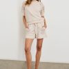 The Eddie is a versatile lounge short crafted from soft cotton terry with crochet accents and an elastic drawstring waist. Designed with a high-rise fit and light stretch for everyday comfort.