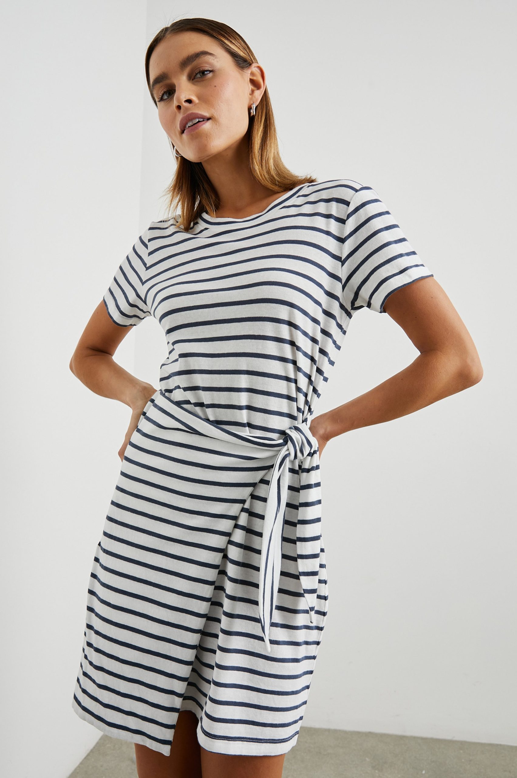 Introducing summer ease. Combining two warm weather staples with its t-shirt body and faux wrap skirt (in ultra-soft vintage cotton jersey), the Edie Dress is a comfortable coastal classic.