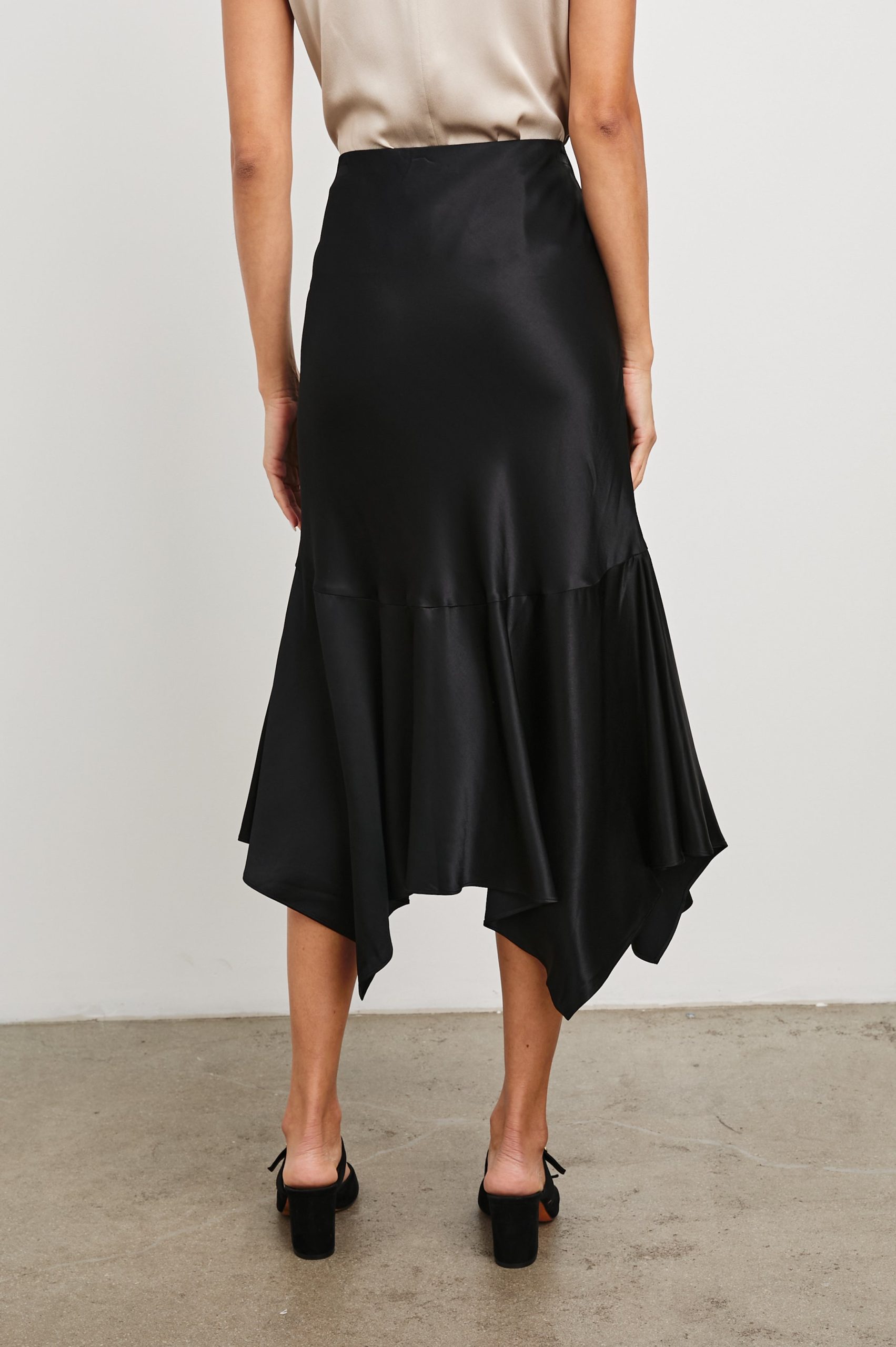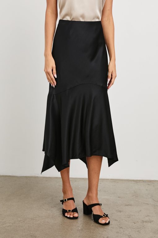 Embrace whimsical elegance with Edwina. Crafted from an ultra-smooth satin crepe with a hankerchief hem and hidden elasticated waist, it fuses comfort and style. Pair with an elevated tank or chunky sweater, the options are endless.