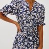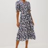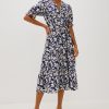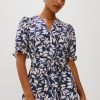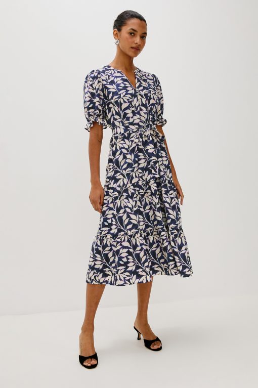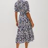 The Eliana dress features a ruffle hem and shirred short sleeves, cut from autumnal-printed crinkle cotton poplin for a free-flowing silhouette.