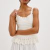 The Estefania fitted top stands out in an exceptionally soft crochet cotton fabric. Delicate details include scalloped straps and a ruffled crochet hem.