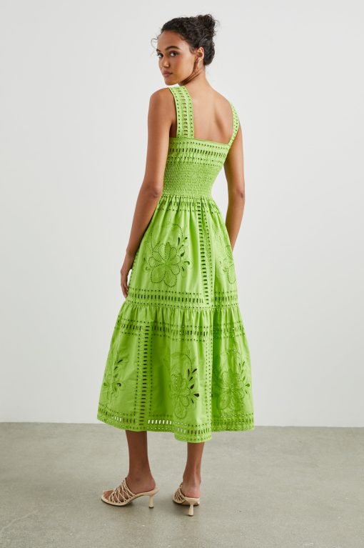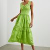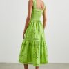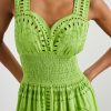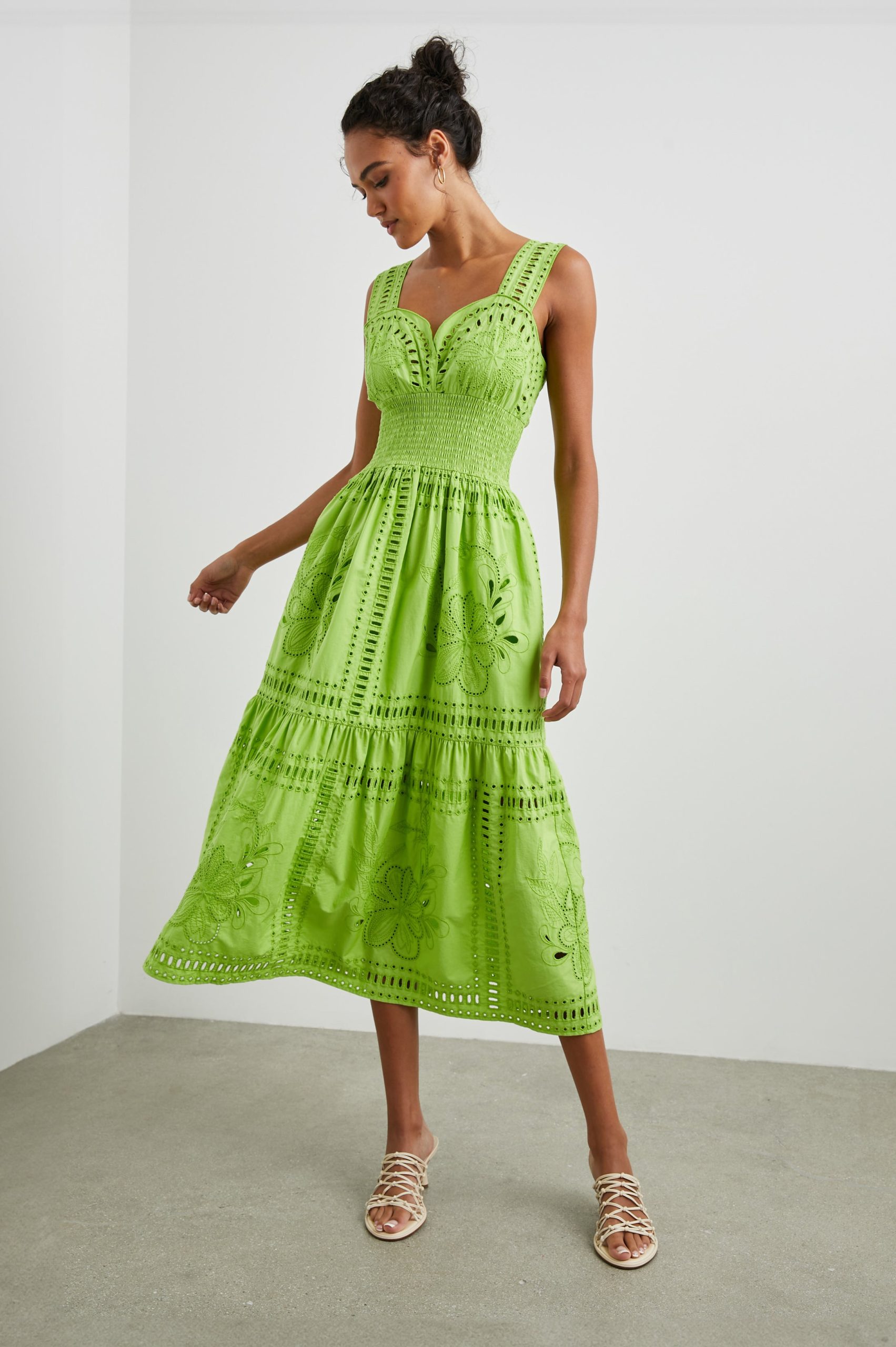 Show stop in this midi length dress, complete with a stunning sweetheart neckline and intricate eyelet details. The crisp cotton poplin is heavyweight yet breezy, while the tank straps and cinched waist add just the right amount of structure.