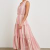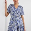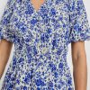 The Fiorella is an airy mini dress crafted from lightweight crinkle chiffon. It features subtle peplum sleeves, a plunging v-neckline, and a shirred waist that flows into a lined, tiered skirt.