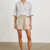 The Foster is a mid-length, high-rise short crafted from heavy linen. Featuring a paperbag waist with an adjustable corded drawstring and spacious front pockets, it’s a fresh take on the classic on-the-go short.
