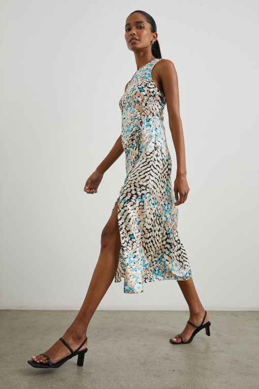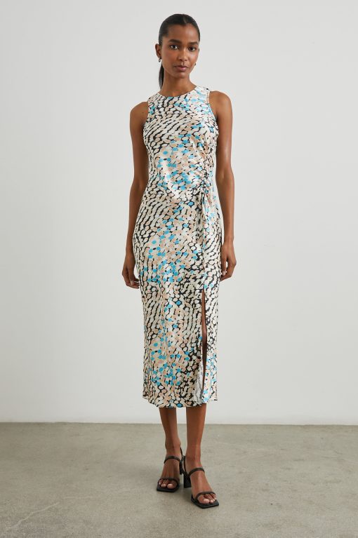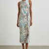 The Gabriella Dress is a slip dress, but better. Crafted from a crinkly, textured satin, it gracefully skims the silhouette without clinging and falls at a midi length. The side slit, asymmetrical, ruched drawstring and watercolor floral print give it a look that’s flawlessly chic.