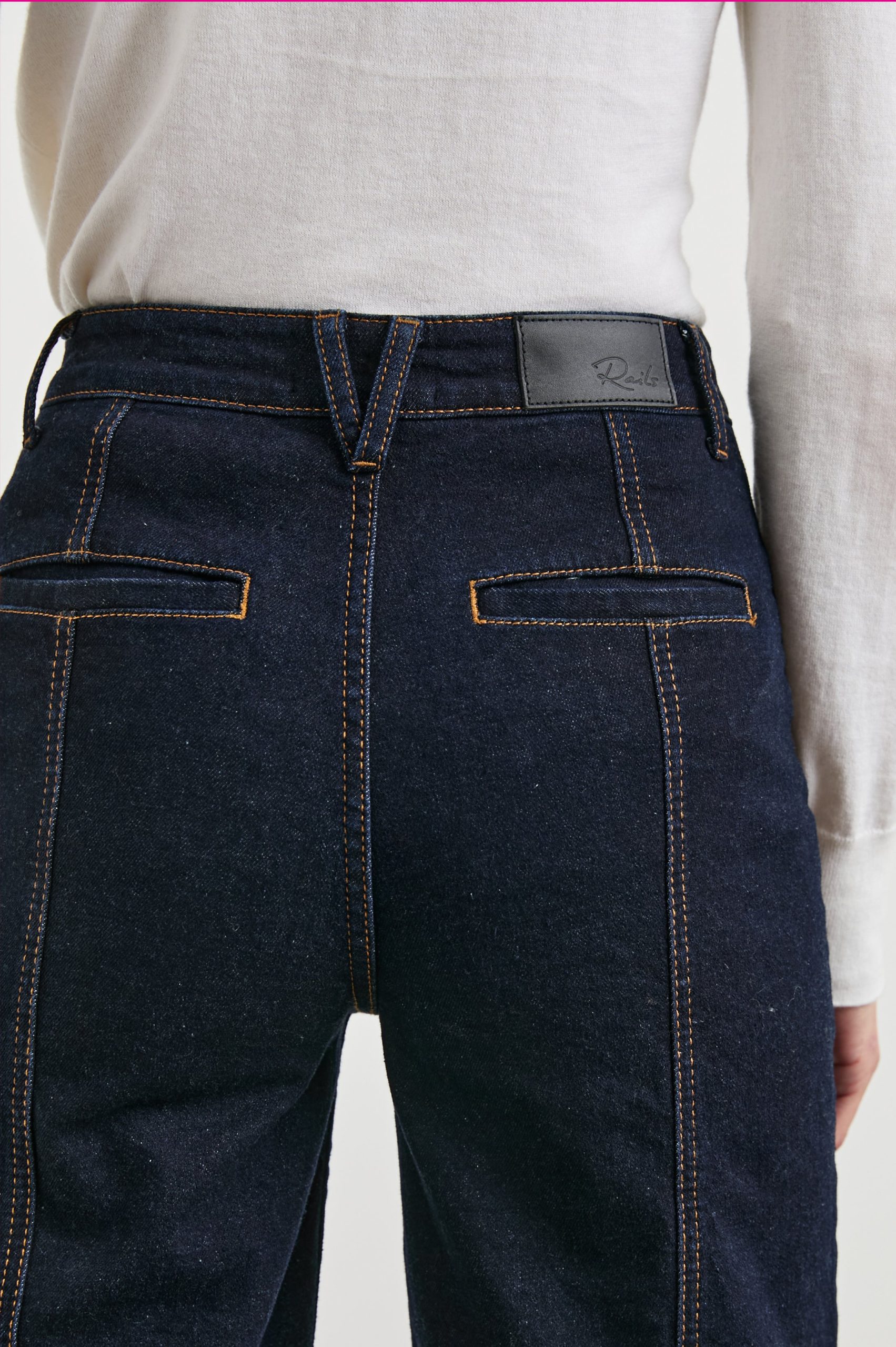 Jean-meets-cargo pant, this carpenter-inspired style has all the same features of our best-selling Getty crop – high-rise, wide-leg, and 27-inch inseam – complete with utility details like statement stitching.
