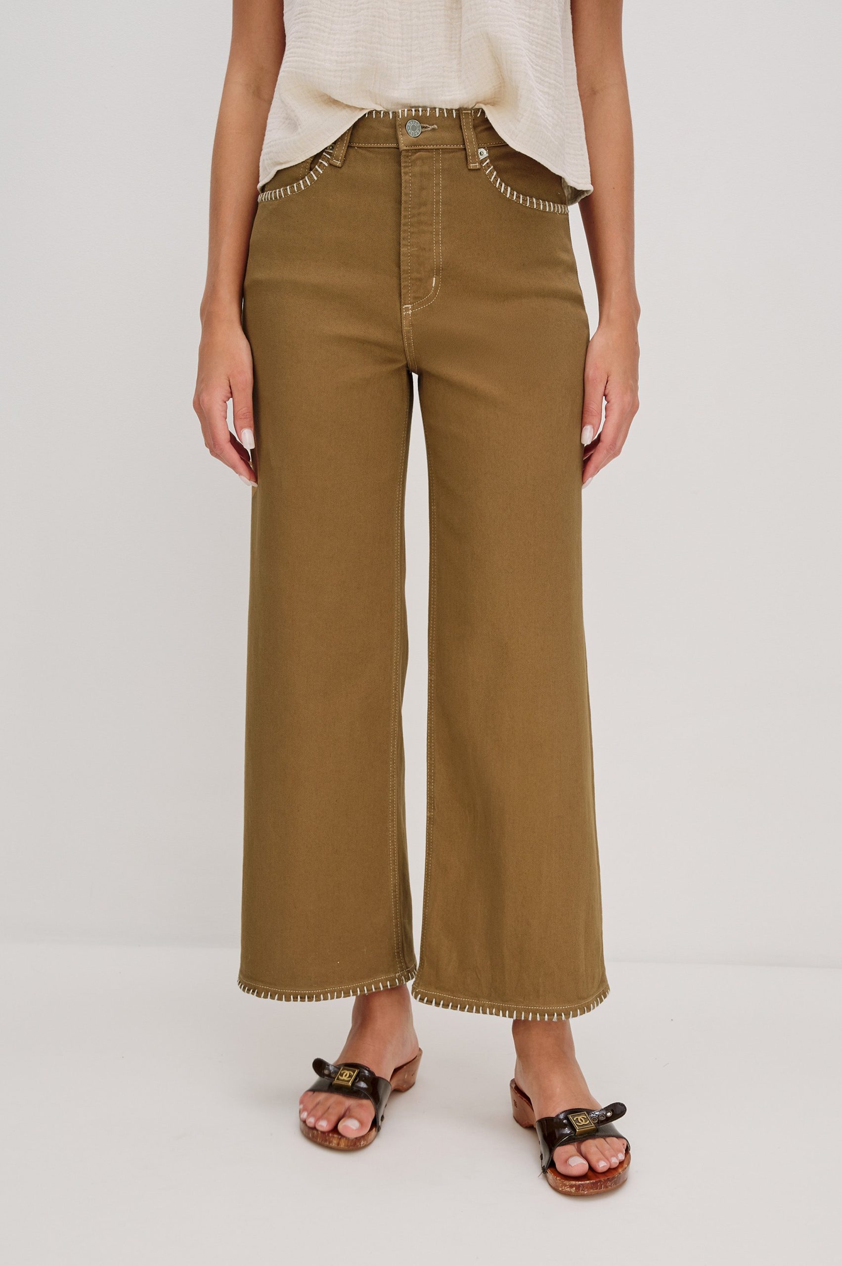 Our best-selling Getty style, just shorter. This jean features the same flattering wide-leg Getty fit, with an ankle-baring 27″ inseam. Fabricated from comfortable, light-stretch denim with blanket-stitch details, this style is a year-round staple.
