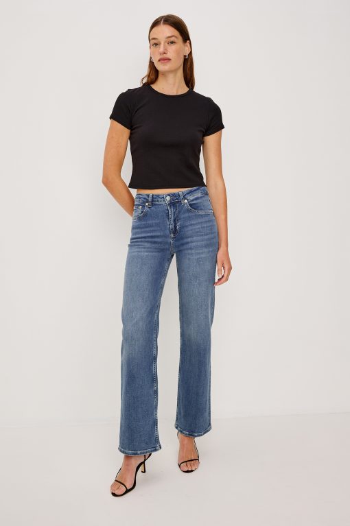 Modern fabric innovation meets heritage design in the Getty. This best-selling jean creates an hourglass silhouette with a high-rise, cinched waist and flared leg. Finished with an ultra-elongating 31-inch inseam, button-fly, and a little stretch for comfort.