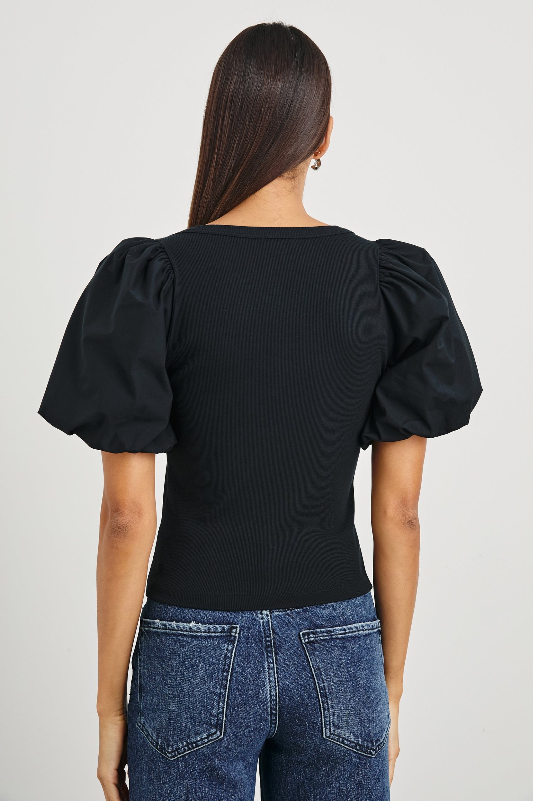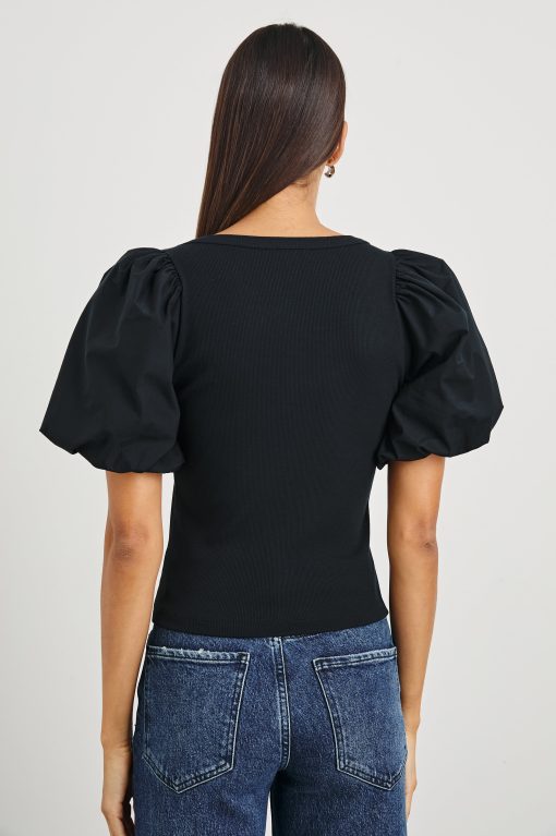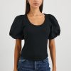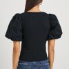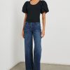 A t-shirt with a twist, the Hallie brings the drama with billowing crochet sleeves and a deep v-neckline. Cut from lightweight cotton blend with a pointelle stripe stitch, step out in this and expect all eyes on you.