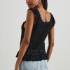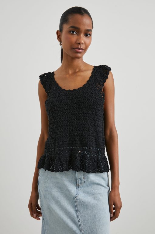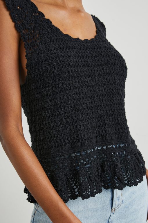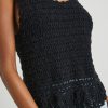 An elevated take on the classic warm-weather tank, this boho-chic top is made from a crochet fabric and features intricate knit details on the sleeves and bottom hem. Perfect for pairing with denim and strappy sandals.
