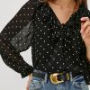 The Honora is a sweet chiffon top defined by its feminine details, including a ruffled neckline and self-tie front closures. It’s partially lined for comfort.