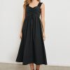 Designed from heavy cotton poplin, the Irisa fuses structure and femininity. This midi features a ruched bodice, wide frilled straps and a sweetheart neckline, with an empire-inspired silhouette.