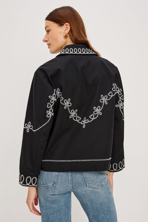 Cut from comfortable yet structured cotton canvas, the Keaton jacket boasts a classic fit with playful contrast embroidery. A hidden button placket and functional pockets create a streamlined silhouette.