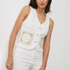 The La Jolla is a cropped denim vest featuring horn buttons and unique crochet patch pockets. Its cotton fabrication provides a flattering structure with just the right amount of subtle stretch.