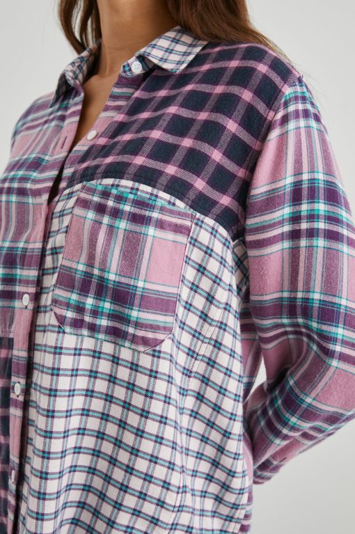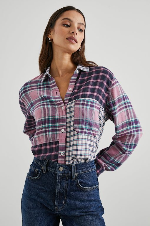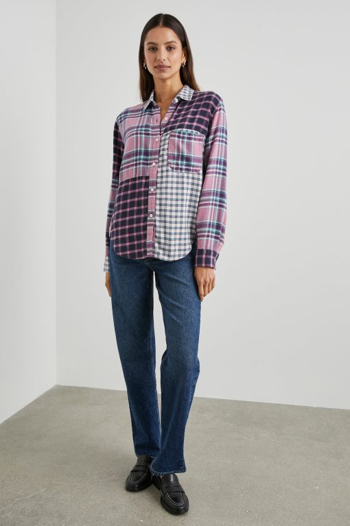 It's flannel season. Take things up a notch in the Lakin, featuring a unique pink, blue, and purple plaid print. Designed in a soft, light twill, this shirt features full-length buttons and a pocket on the right chest.