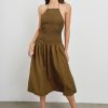 The Leslie offers the best of both worlds. This halter midi dress features a lightweight jersey bodice—smocked for the perfect fit—and an airy skirt with plenty of movement.