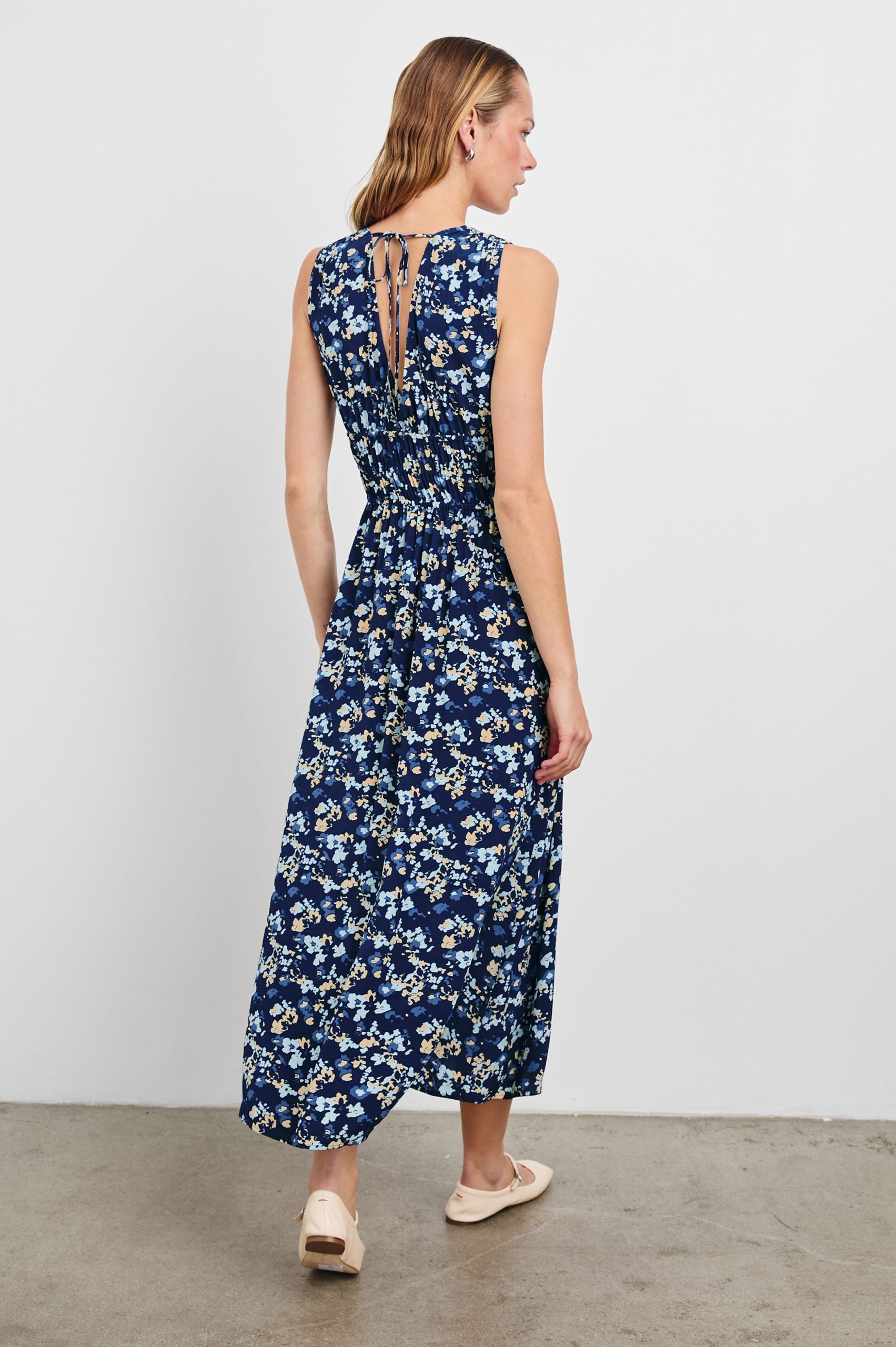 A midi dress with a plunge neckline crafted from a supple rayon crepe. With smocking, wide straps and an adjustable back strap, the Lilith has a flowing silhouette that cinches at the waist.