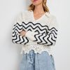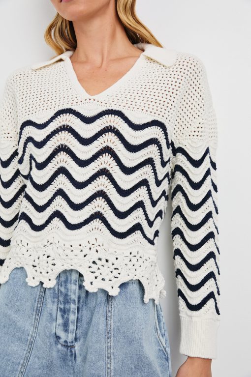 A seaside-inspired sweater crafted from luxe cotton. The Louise is a sweater-meets-coverup with a relaxed fit and features a statement design, collared v-neck, and scalloped hem.