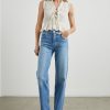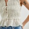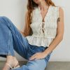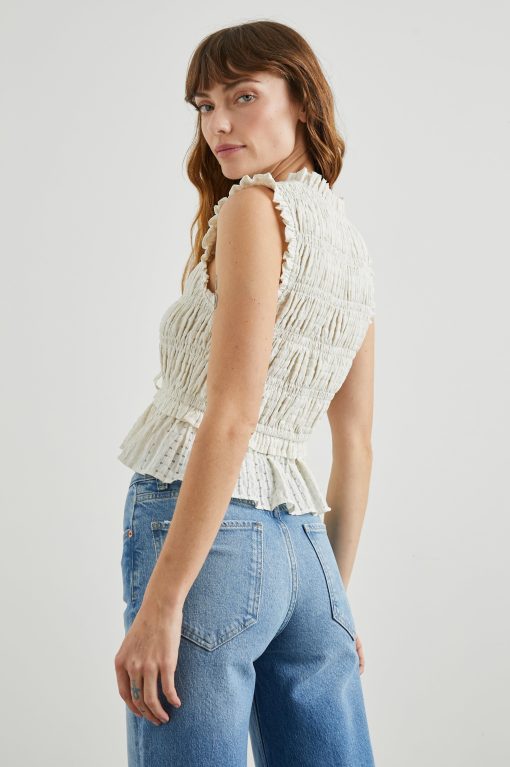 A must-have in every wardrobe, Martine is made from ivory seersucker fabric and features dainty feminine details like front ties and a ruffled bottom hem. This style pairs well with skirts, shorts, and more and is guaranteed to cause compliments.