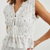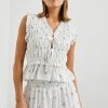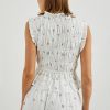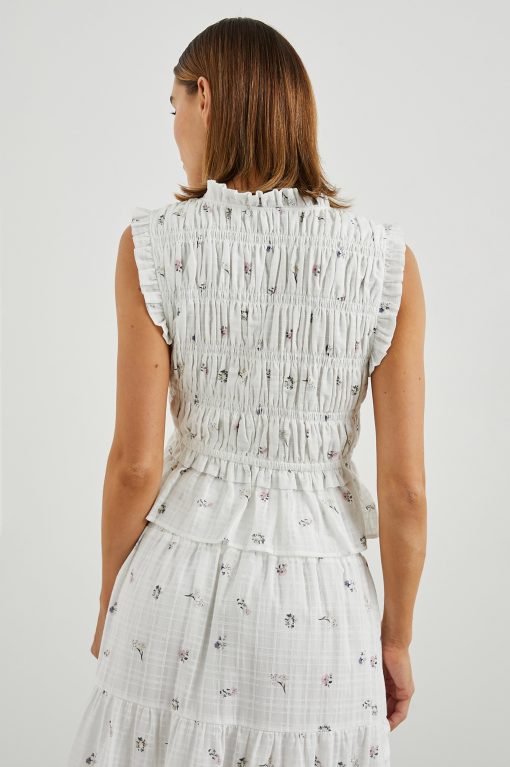 Crafted from 100% lightly textured cotton adorned with dainty bouquets, the Martine does feminine details right with smocking, ruffled edges and front-ties for a customizable fit.