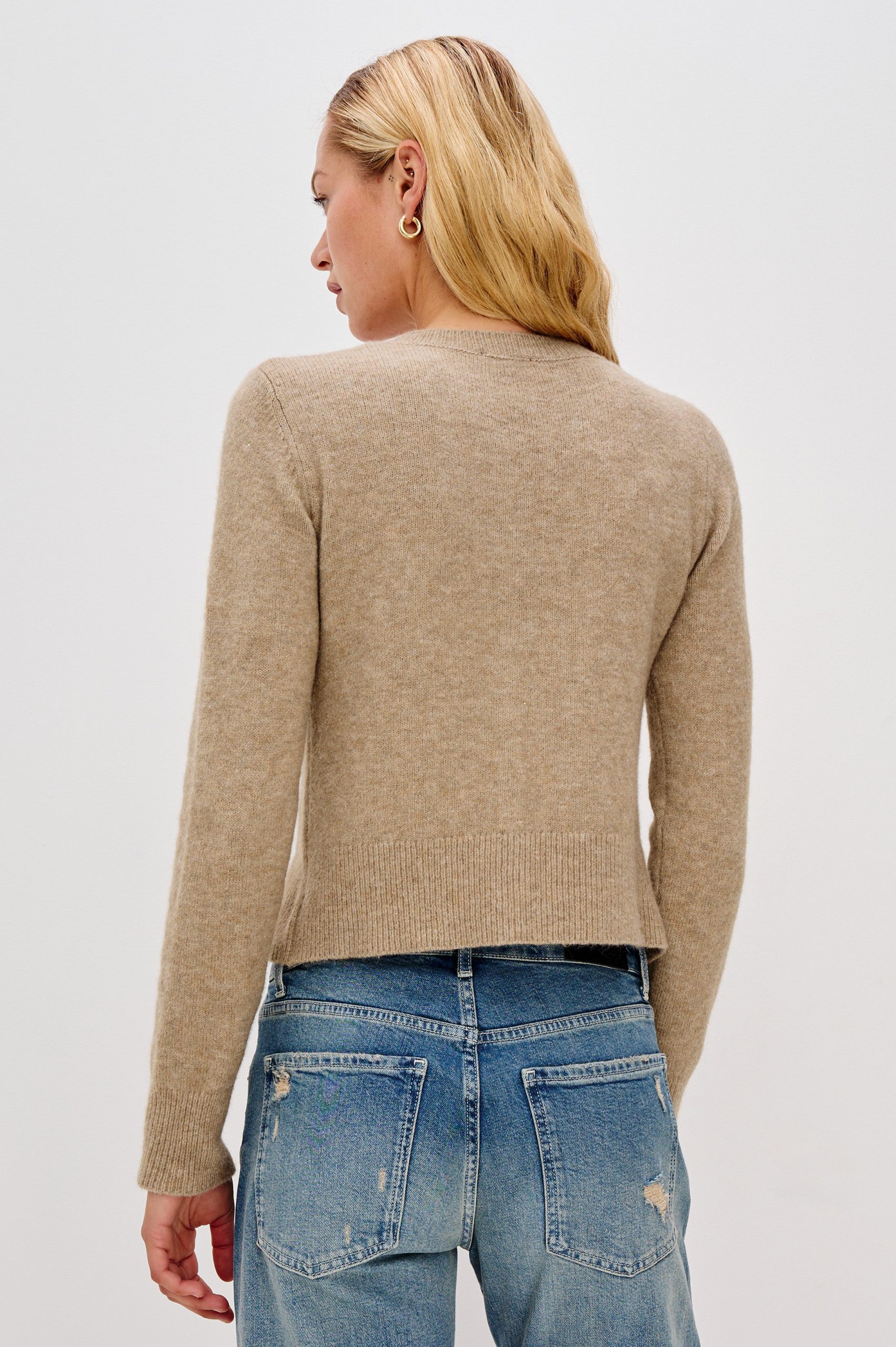 The Matilda is a cropped take on the cardigan, with a luxurious cashmere blend. It’s cute enough to wear on its own or add dimension by layering.