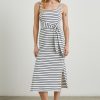 The Meg Dress, with an easy wrap-style design at the waist, is the perfect warm weather addition to your wardrobe. It’s cut from vintage cotton that’s substantial without feeling heavy and skims the body in all the right places. Done in navy stripes, there are many ways to work this closet essential.