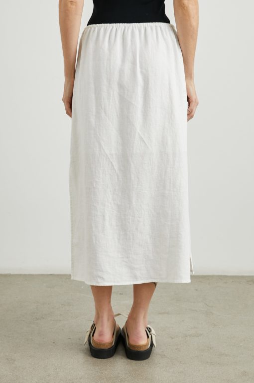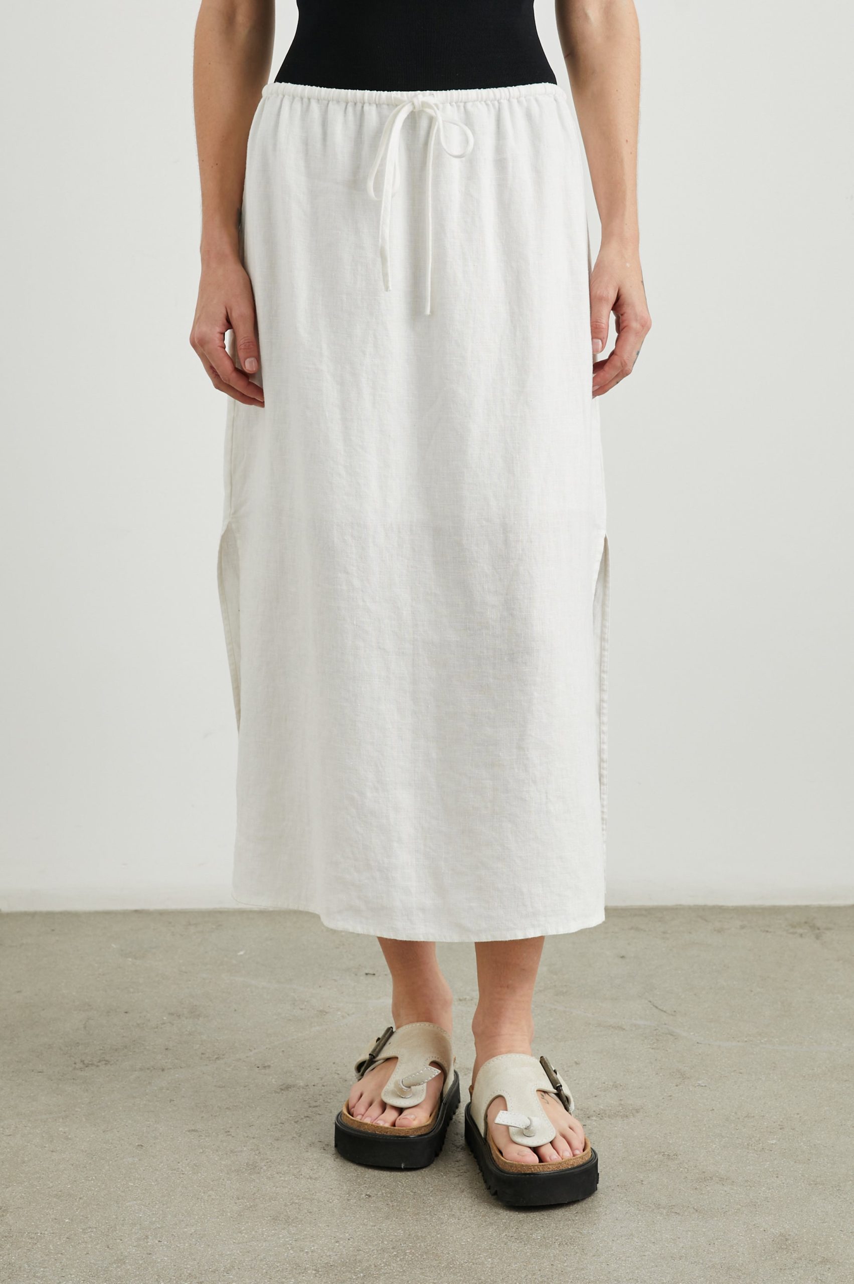 The classic midi skirt, the Monet is cut from heavyweight linen and includes an adjustable drawstring at the waist. It pairs well with flowy tops, sweaters, tanks, and more.