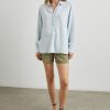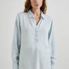The Nissa Top looks as elegant with a pair of jeans as it does with a satin skirt. Done in a light vintage wash, the pullover top is designed in sustainably sourced Tencel™ with a concealed half placket, curved shirttail, and split side seams.