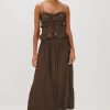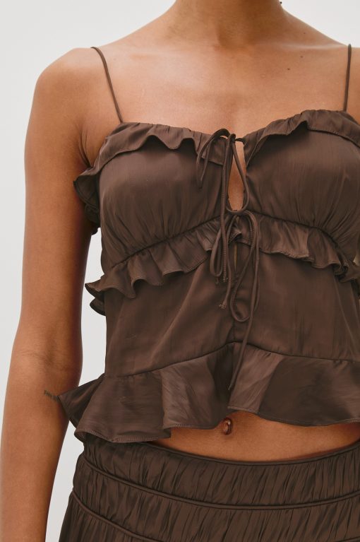 Crafted from silky crinkle satin, the Ortona Top has tiered ruffles and dainty tie closures. A side zipper and adjustable straps ensure the perfect fit.