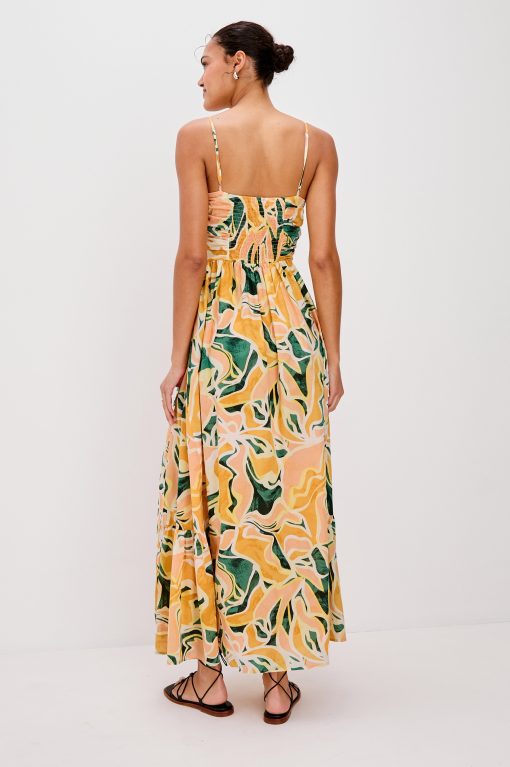 An essential maxi sundress, crafted from sunshine-ready beach cotton. The Palm features a full, tiered skirt, fitted bodice with a V-neckline and adjustable straps.