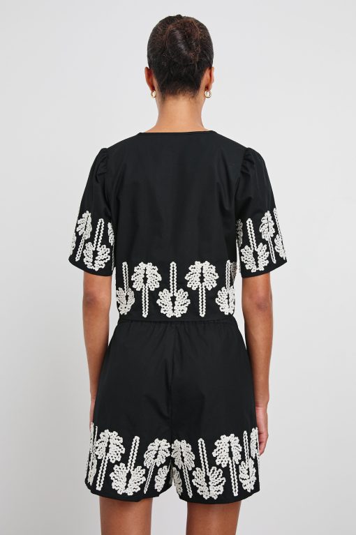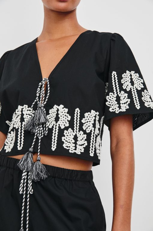 Elegant and ultra-lightweight, the Pari is crafted from heavy luxe linen with tie closures, a cropped length, and palm embroidery. Wear with your favorite denim shorts, or pair with the matching Emmie Pant for an elevated, travel-ready look.